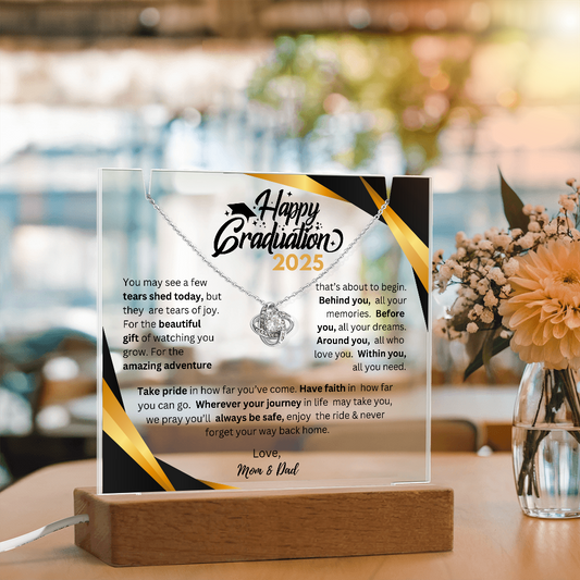 Happy Graduation | Before You All Your Dreams | Love Knot Necklace Acrylic Plaque (BLK TXT)