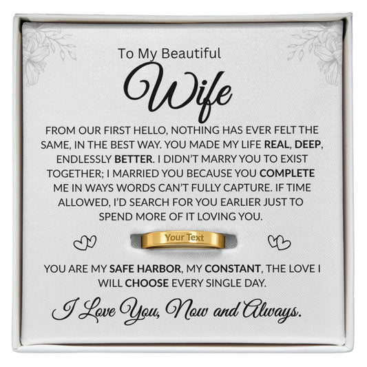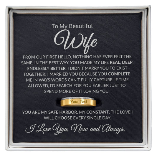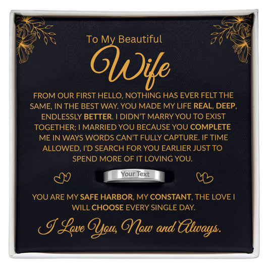 To My Beautiful Wife | Heart of Our Home | Engraved Ring (BLK TXT)