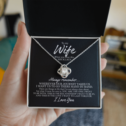 To My Wife | Always Remember | Love Knot Necklace (WHT TXT)