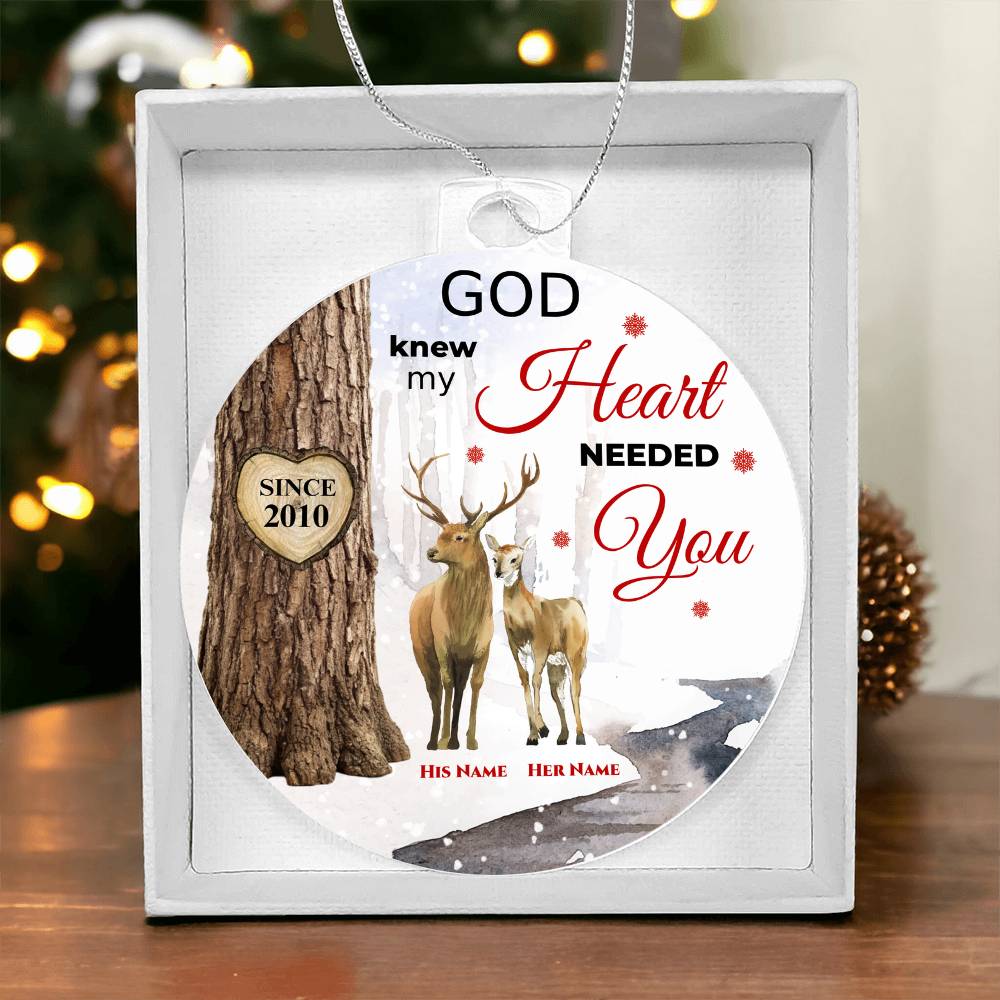For the hunter whose heart belongs in the woods—celebrate love and the great outdoors with this Personalized Deer Couple Ornament.