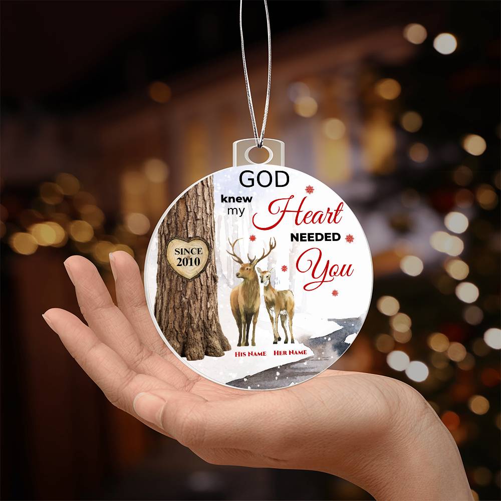 Crafted from durable, high-quality acrylic and featuring a buck and doe design, this ornament symbolizes strength, loyalty, and the bond you share. Add your names and special date to create a keepsake that feels as timeless as the hunting tradition itself.