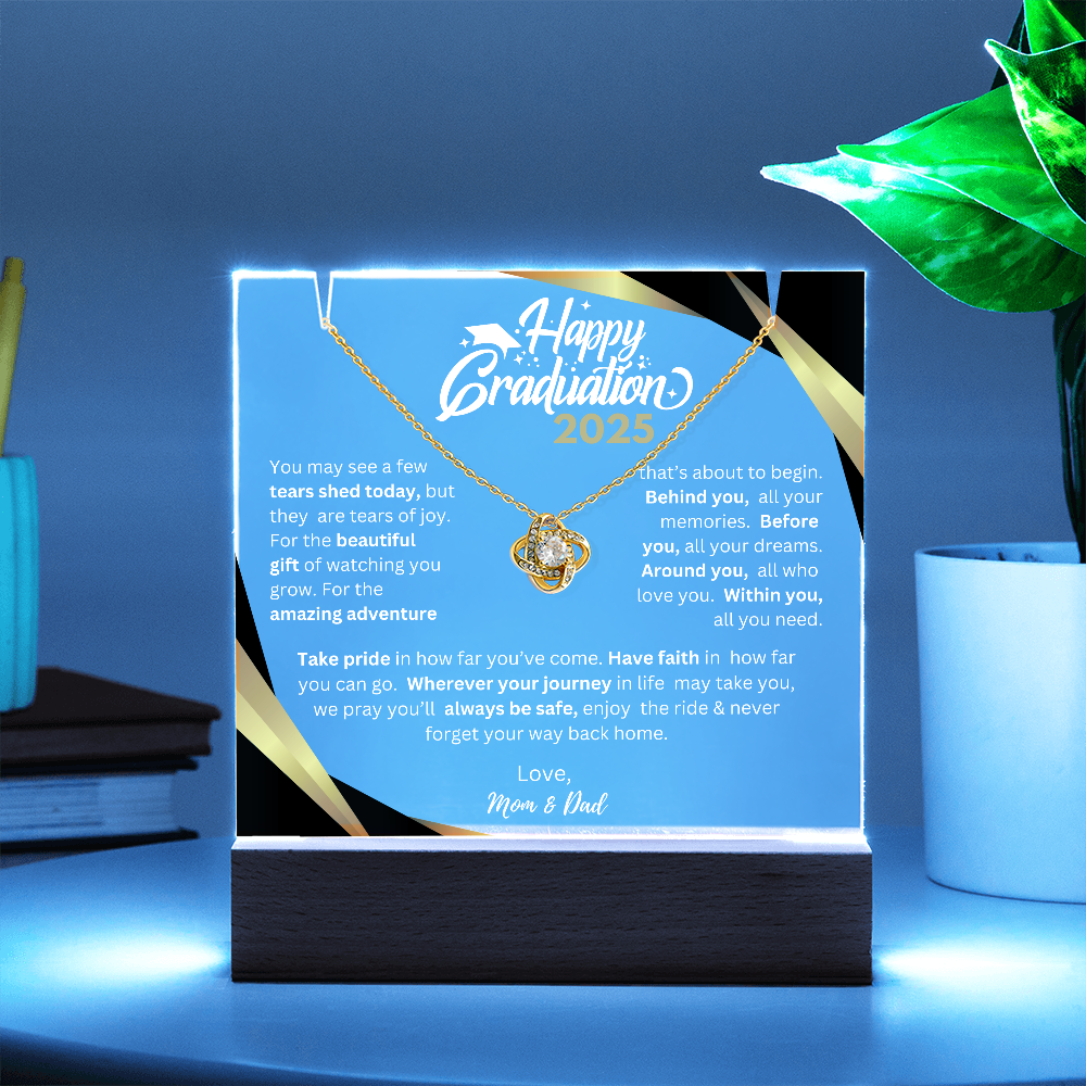 Happy Graduation 2025 | Before You All You Need | Love Knot Necklace Plaque (WHT TXT)