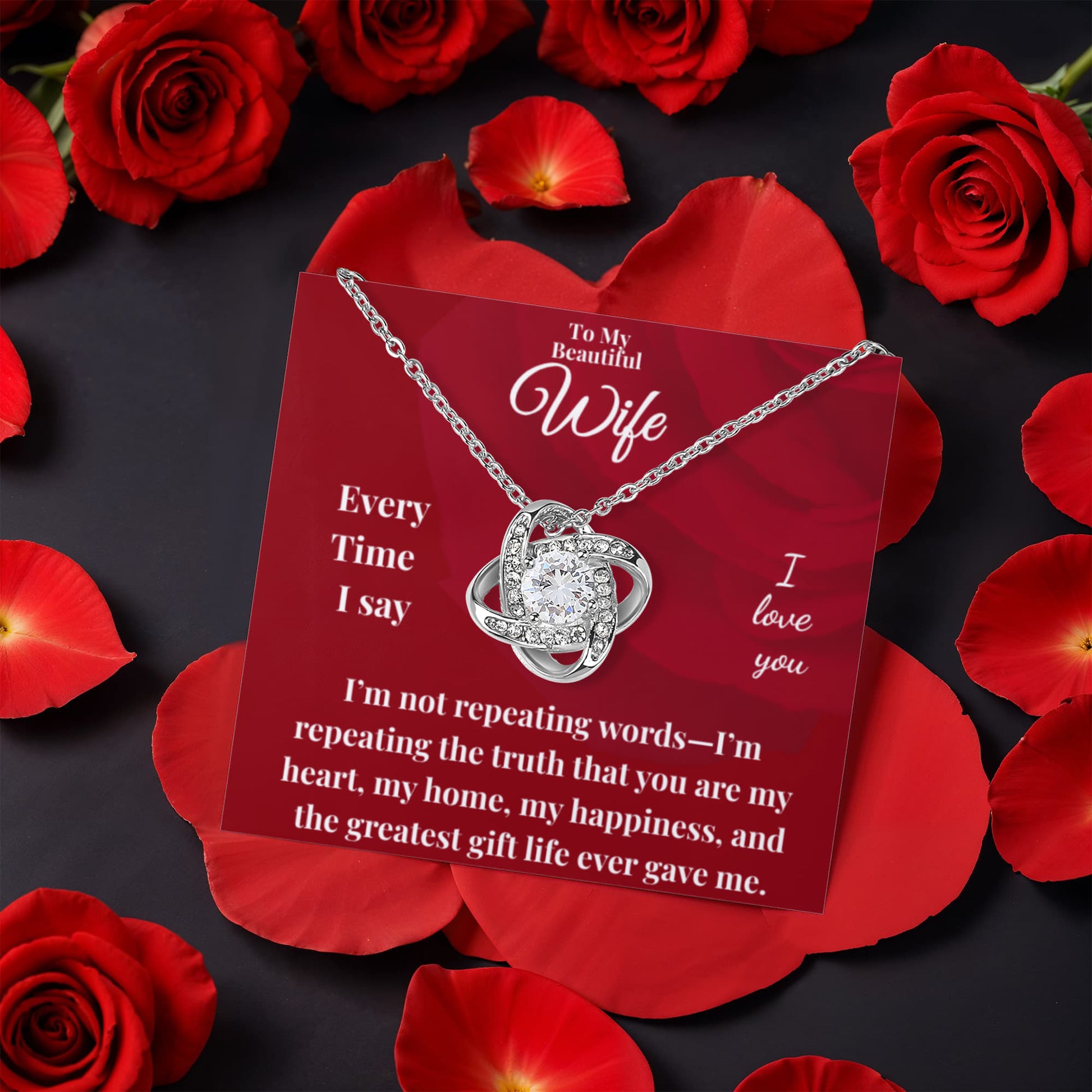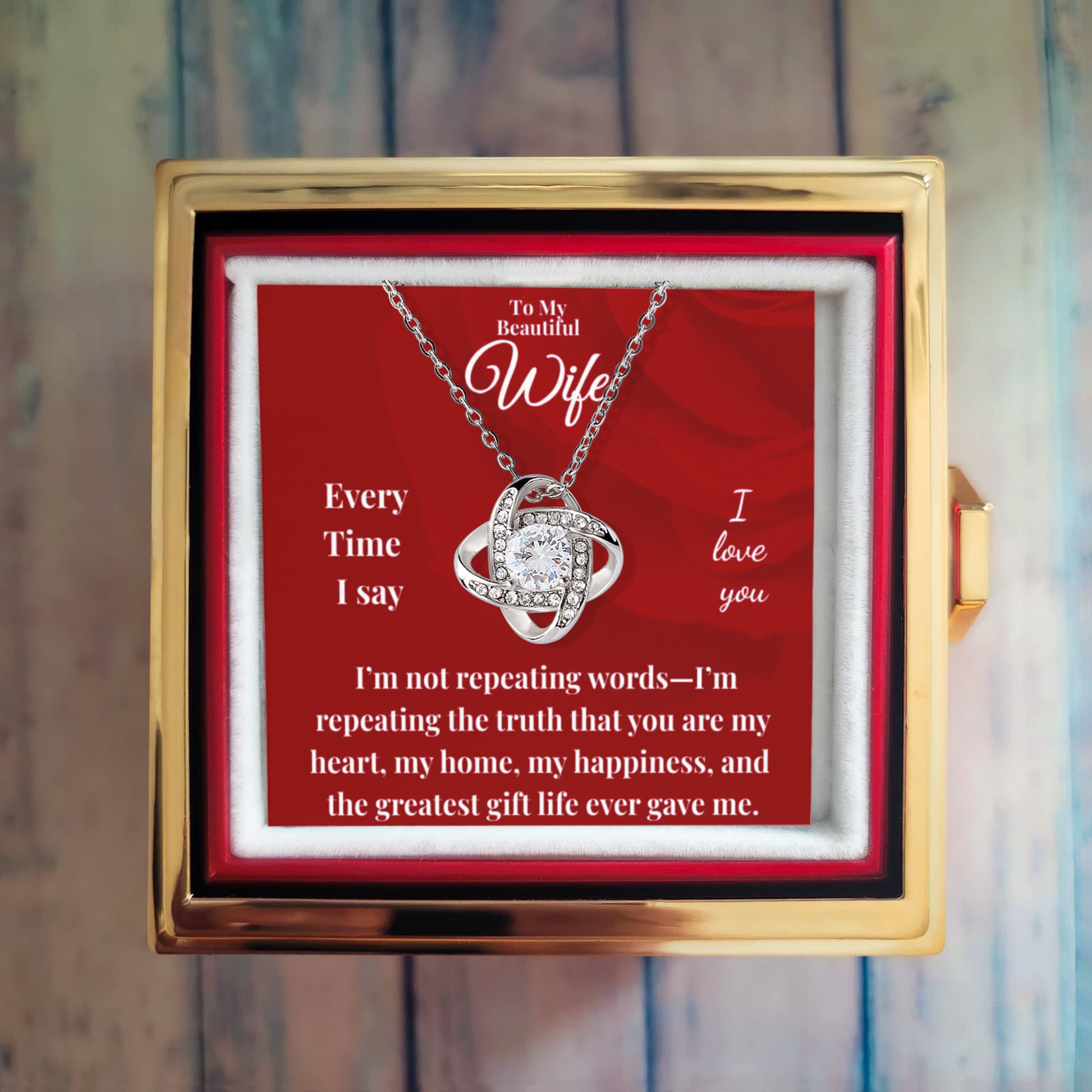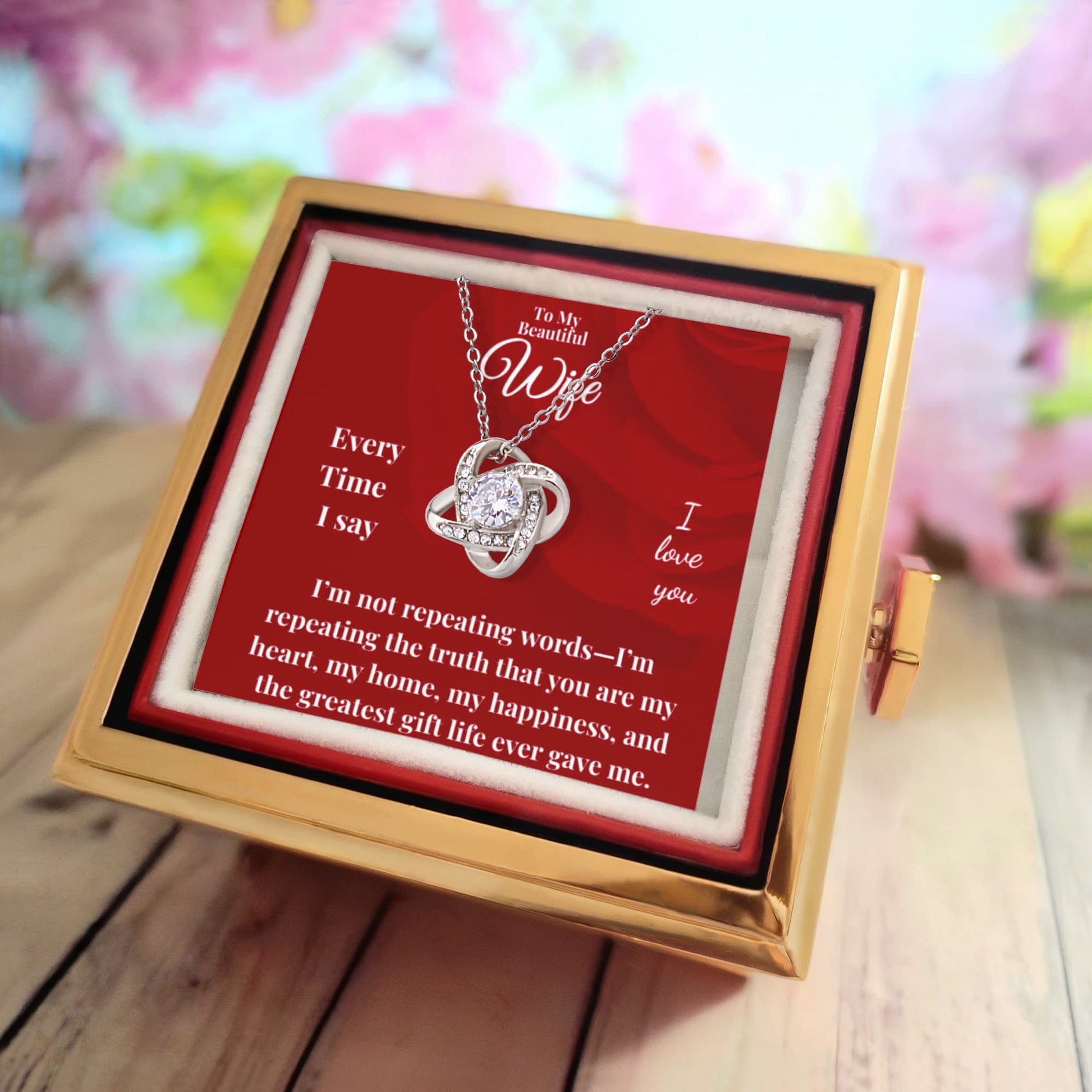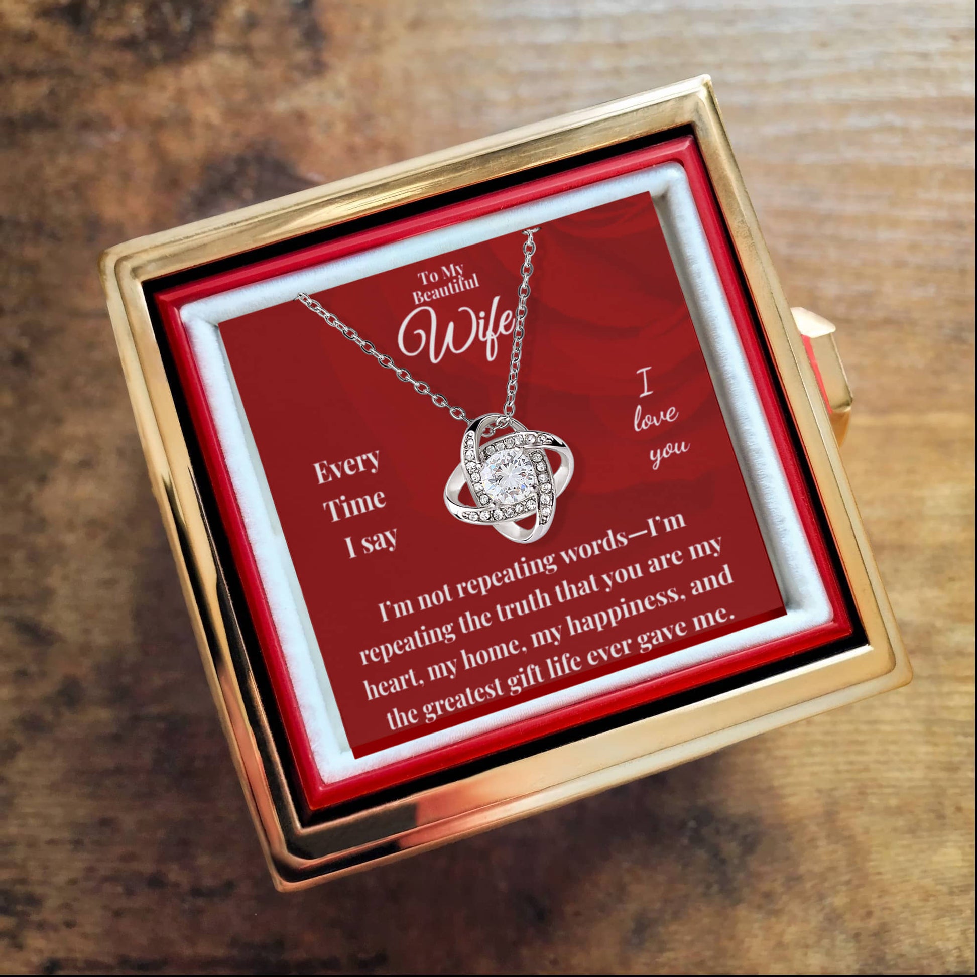 To My Beautiful Wife | Love knot Necklace | Rotating Rose Gift Box