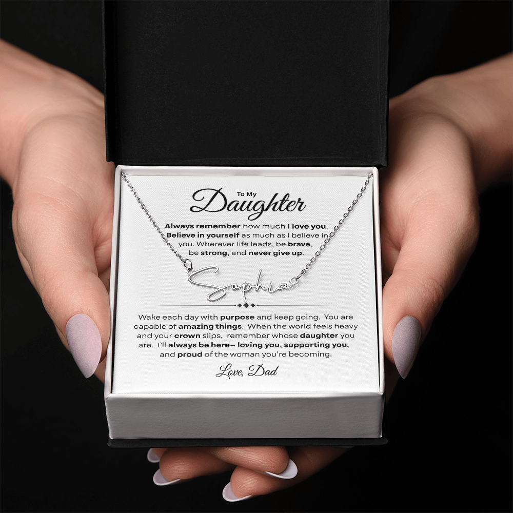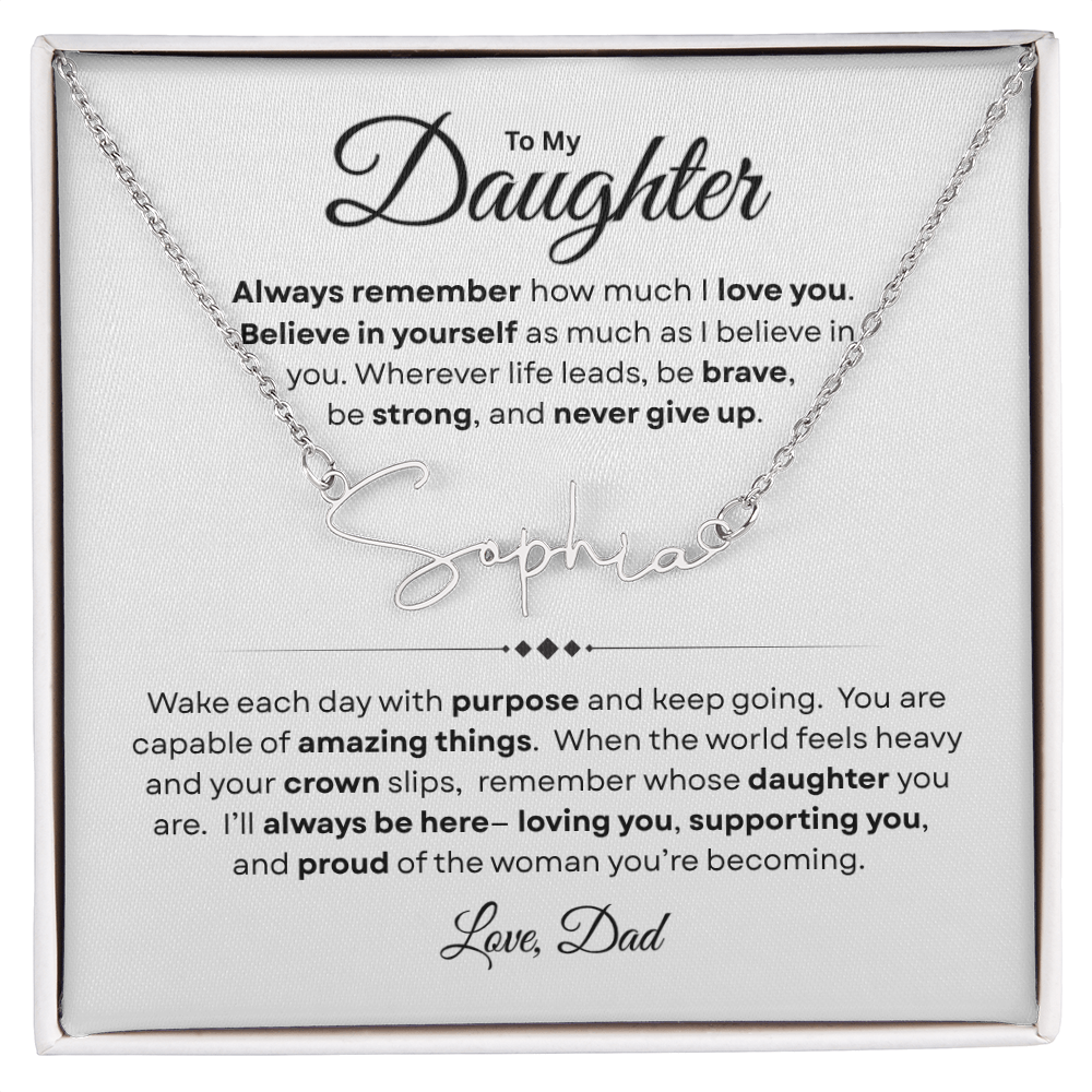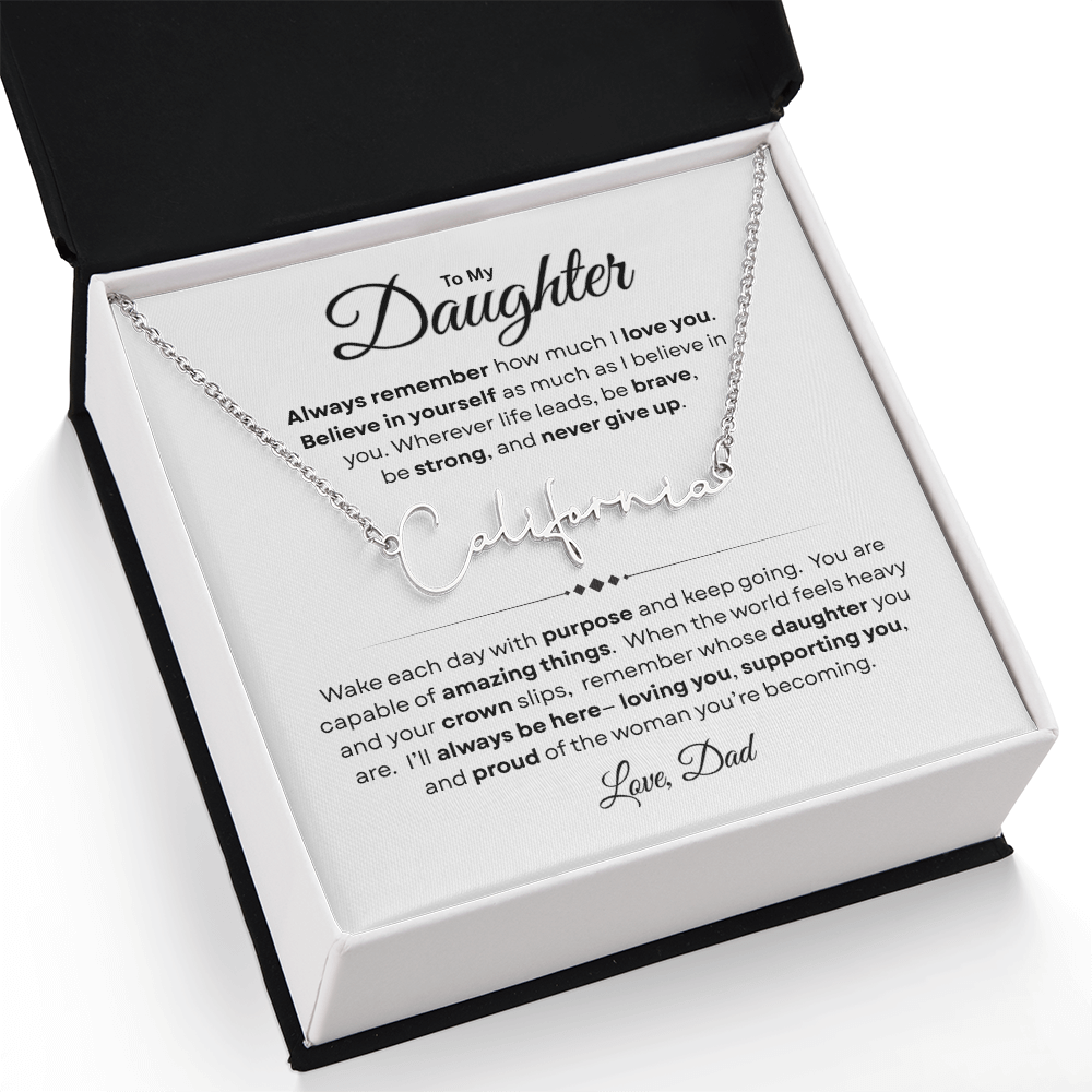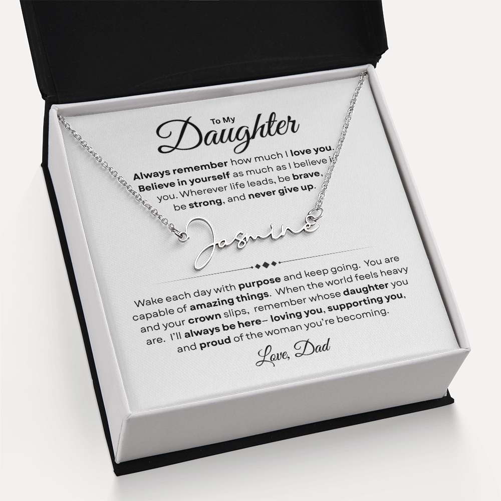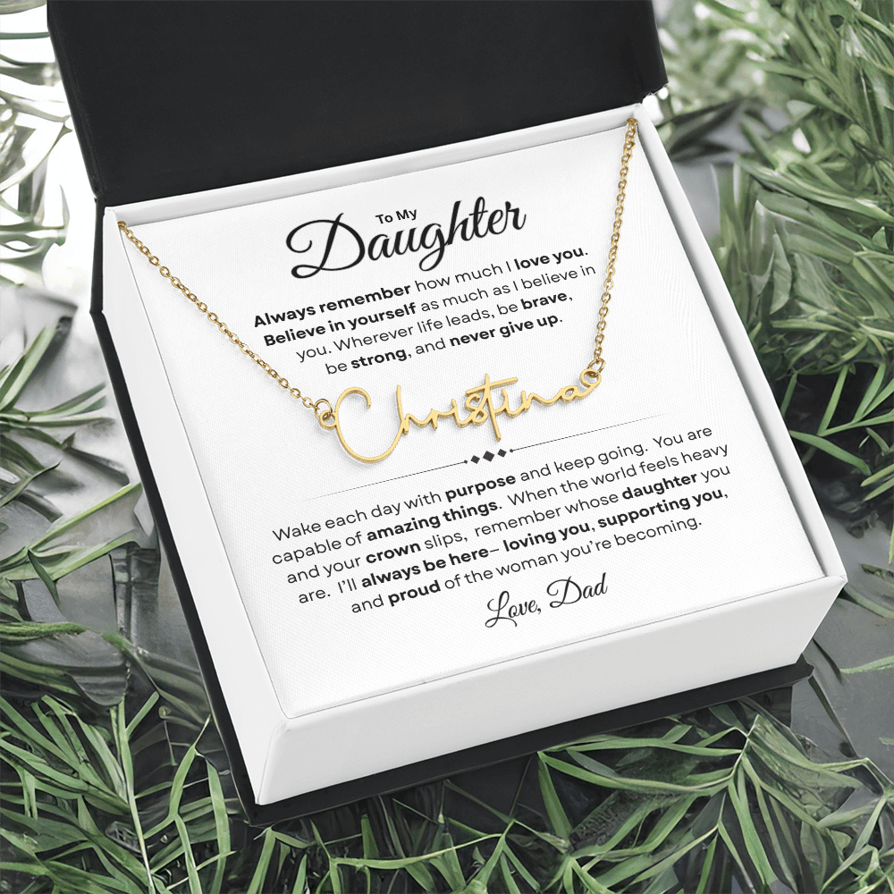 To My Daughter | Believe In Yourself | Personalized Signature Name Necklace