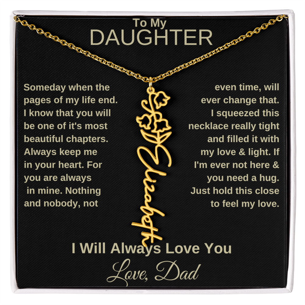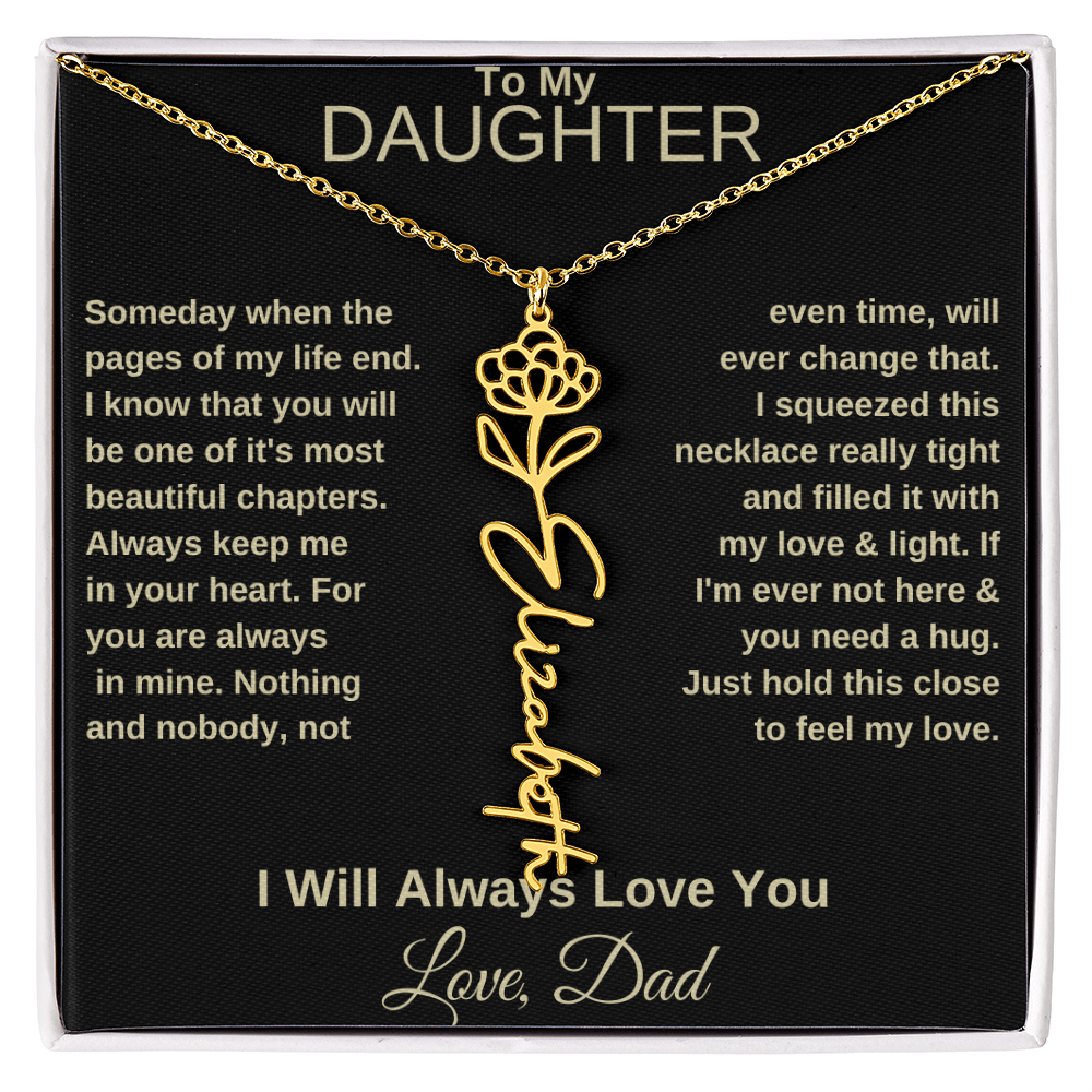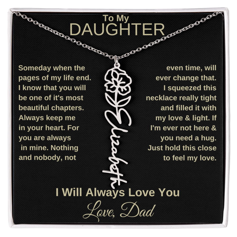 Need a gift that's as unique as she is? Then look no further than ourΒ Flower Name Necklace! With a customizable birth flower design, this necklace is a meaningful addition to any jewelry collection. Whether you're dressing up for a special occasion or simply want to add some flair to your everyday look, this necklace is perfect for your special someone. Handcrafted from high-quality materials, it is both stylish and durable. So why wait? Personalize your own floral name necklace today!