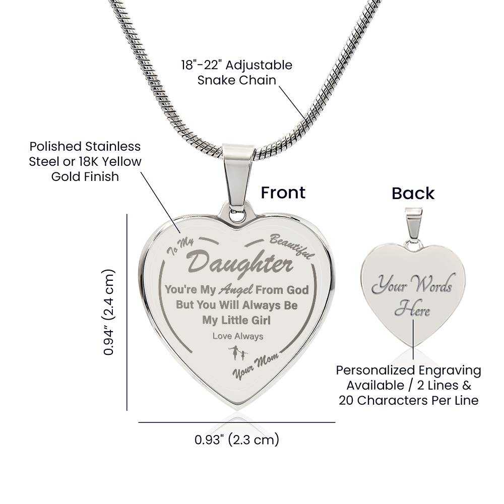 The Engraved Heart Necklace is not just a symbol of love but a testament to our commitment to quality. Crafted from high-quality stainless steel, it is designed to last a lifetime. For those who prefer a touch of luxury, it is also available in an 18K yellow gold finish option.
