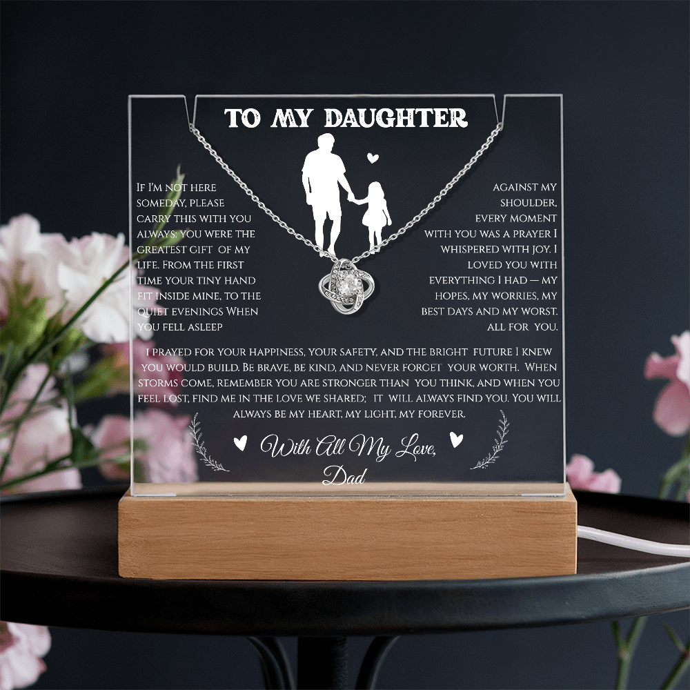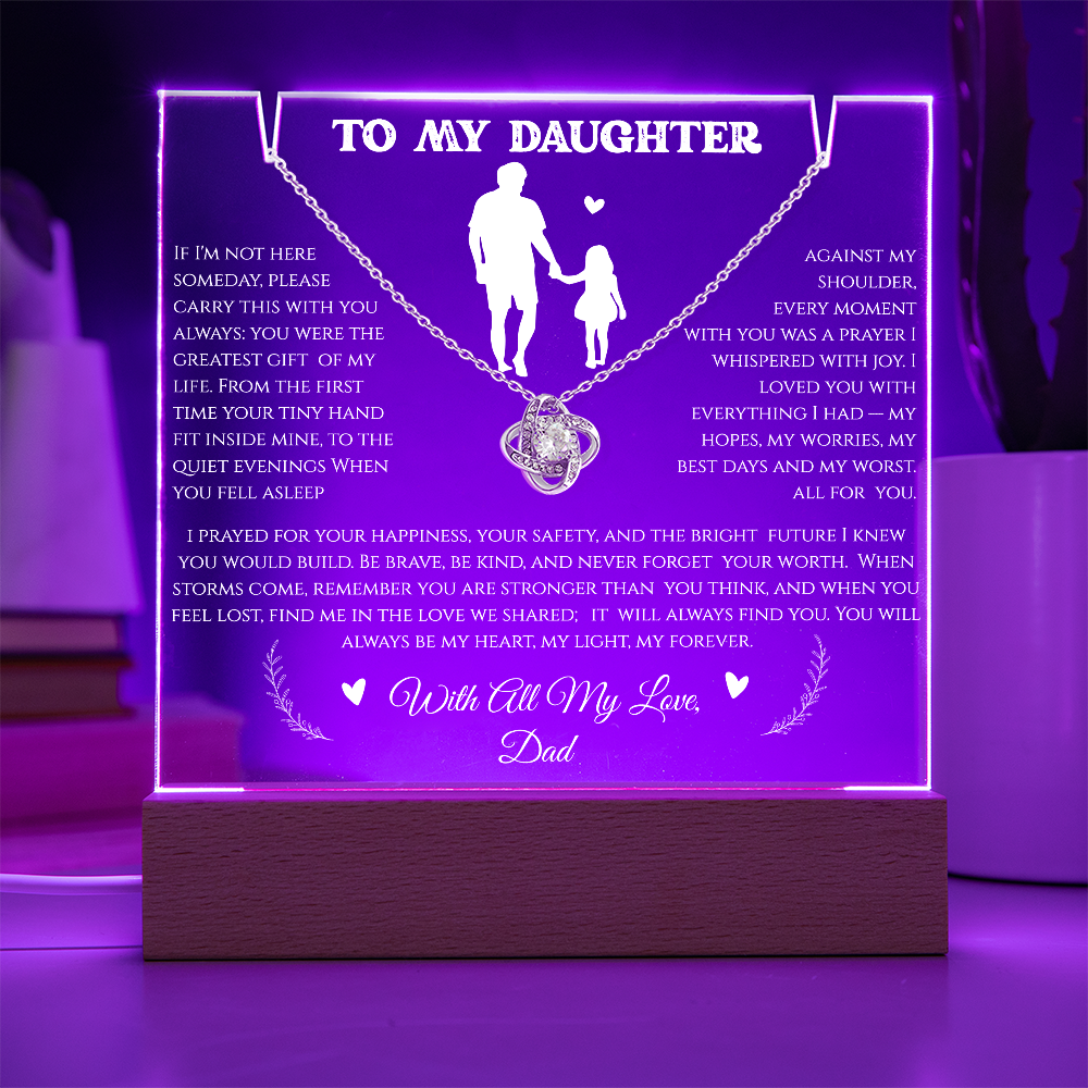 Turn a cherished memory into a glowing keepsake â the Keepsake Acrylic Bundle pairs a crystal-clear, personalized Square Acrylic display with the charming Love Knot Necklace for a gift that shines long after the moment.