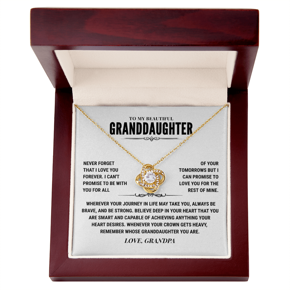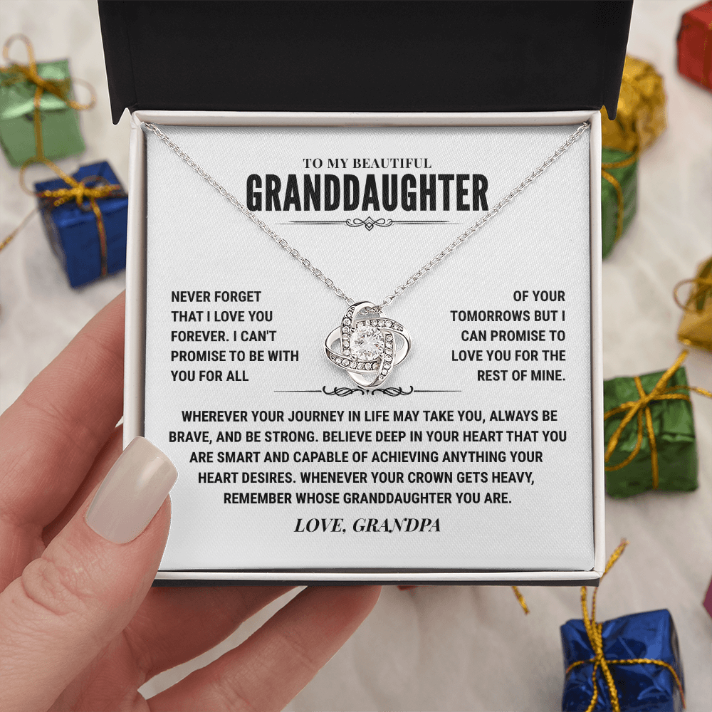 Imagine her reaction receiving this beautiful Love Knot Necklace representing an unbreakable bond between a Grandpa and his Granddaughter.